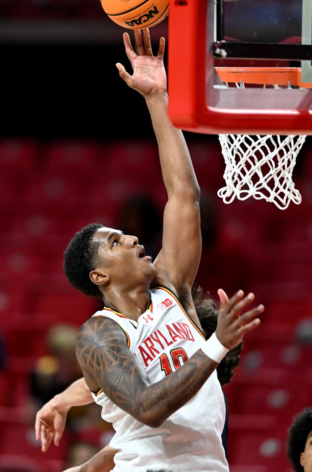 6ft 10in basketball prospect Julian wears No. 10 for the University of Maryland and is NBA Draft eligible after this season.